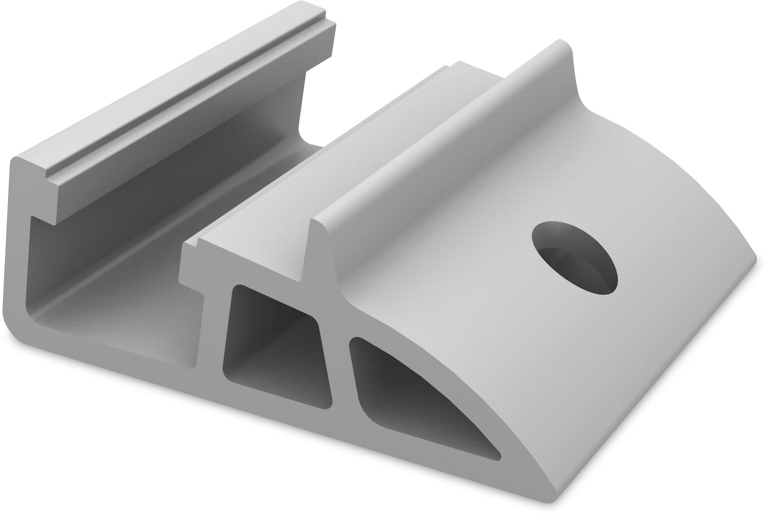 Modulstøtteelement i aluminium til K2 Dome fladtagsystemer (S-Dome/D-Dome). Anvendes som front-/elevationsstøtte i rækker med lavbygget hældning. Materiale: EN AW-6063 T66 aluminium. Kompakt profil (~65 mm bred) til sikker og hurtig montage.