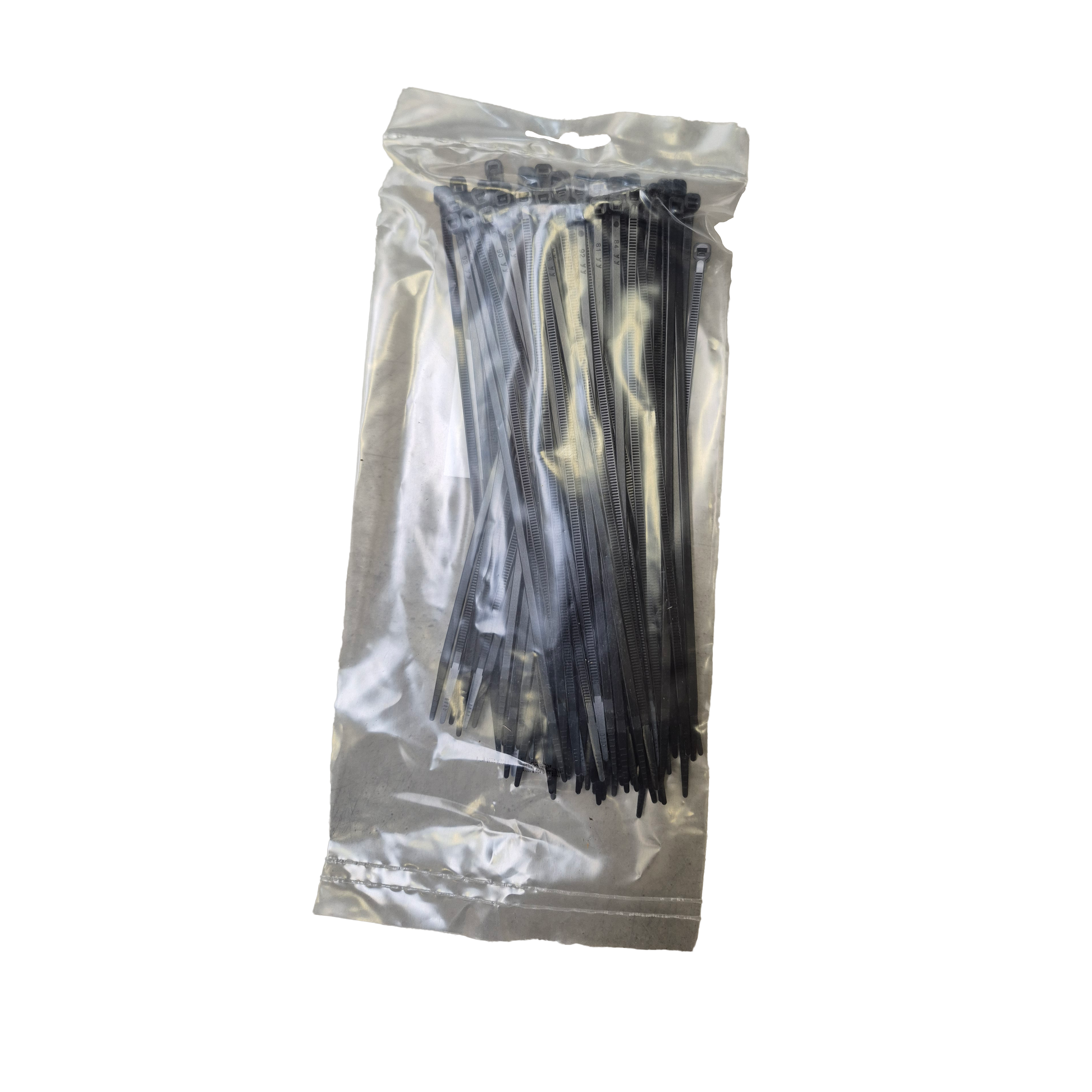 Fleksible og pålidelige kabelbindere til professionel kabelstyring. 3,5×201 mm, sort nylon (PA 6.6), UV-bestandige og brandhæmmende (UL94 V2). Temperaturområde -40 til +85 °C. Pose á 100 stk.