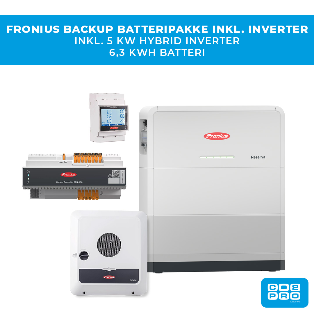 FRONIUS BACKUP BATTERIPAKKE INKL. INVERTER 5 KW 3-FASET + 6,3 KWH BATTERI