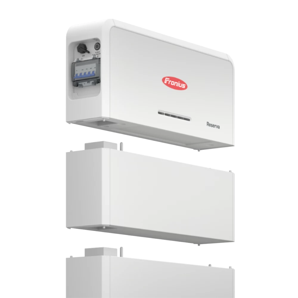 Fronius Reserva batterimodul er byggestenen i Fronius højspændingssystem. Hvert modul leverer ca. 3,15 kWh og kan kombineres i tårne på 2–5 moduler for kapacitet fra 6,3 til 15,8 kWh pr. system. Mulighed for op til 4 parallelle tårne (ca. 63 kWh samlet).