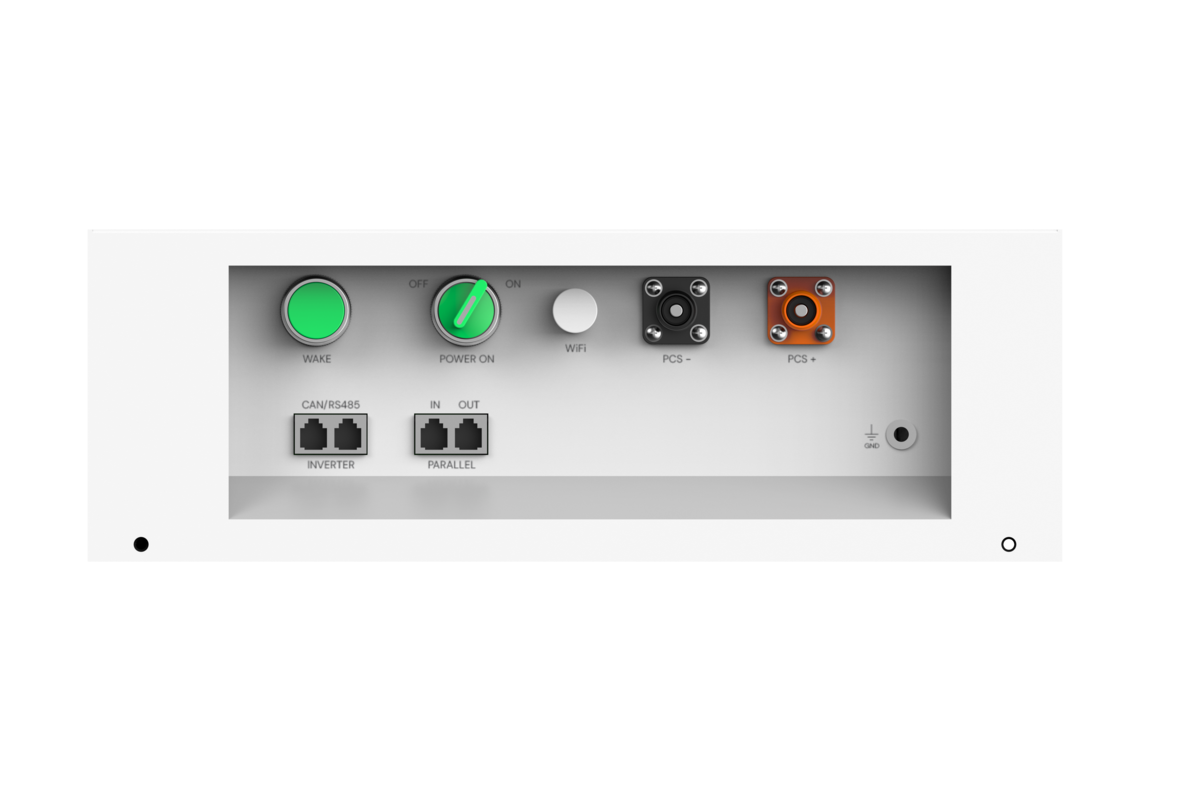 Dyness Stack100 Controller Base + BDU er styreenheden i STACK100-systemet. Hver stack på 3-15 moduler kræver en Controller Base + BDU, og op til 12 stacks kan parallelkobles.