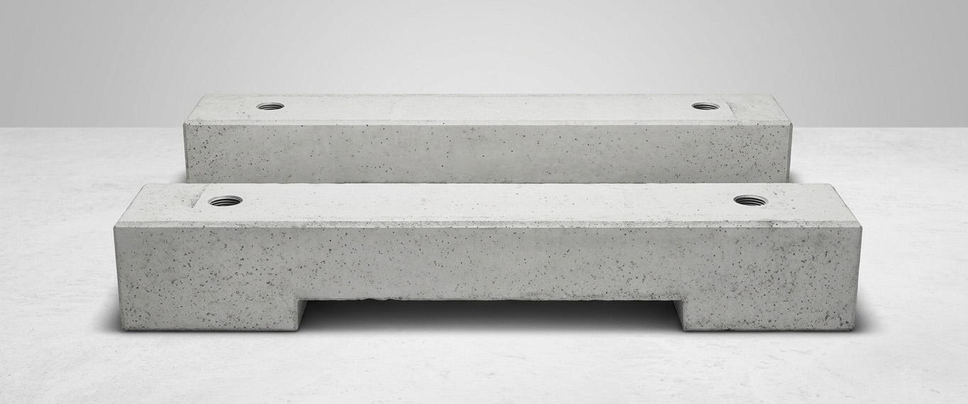 Betonfundament til større BESS-løsninger, udviklet til sikker og stabil placering af batteriskabe over terræn. Fundamentet måler 230 x 40 x 35 cm og vejer 800 kg, hvilket giver en robust base til installationer, hvor der stilles krav til bæreevne og stabilitet.